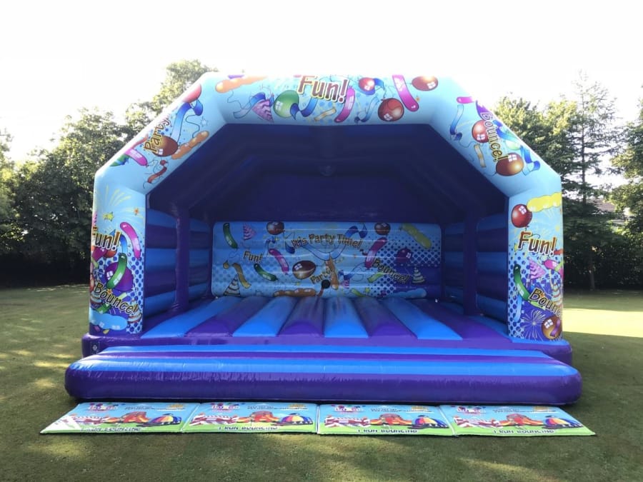 Standing at almost 16ft in height, 25ft in width and 25ft in length this is by far our largest bouncy castle in our inventory :) we decided to go for a neutral theme, because everybody love to party, unfortunately this will not fit into most gardens in dublin as such a large area is needed firstly to put the castle onto and secondly large access is required to actually get this to its location, so if you have that extra large access and space required this will be an amazing castle to have at your party