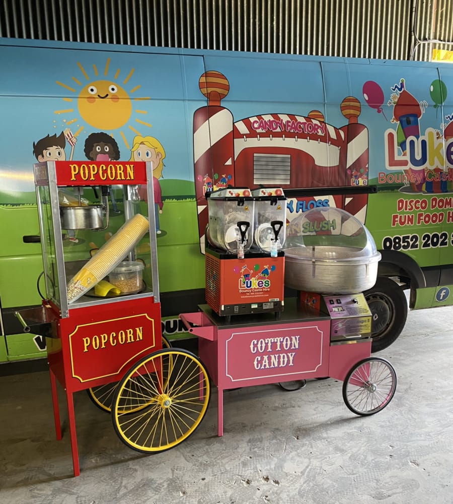 We are so happy to finally get some of these large carts to add to our inventory, combining our Popcorn Machine And Large Cart, Candy Floss Machine and our Slush Puppie Machine with a visually stunning display :) this absolutely stunning vibrant display is one of the most luxurious carts and machines on the Fun Food hire market
