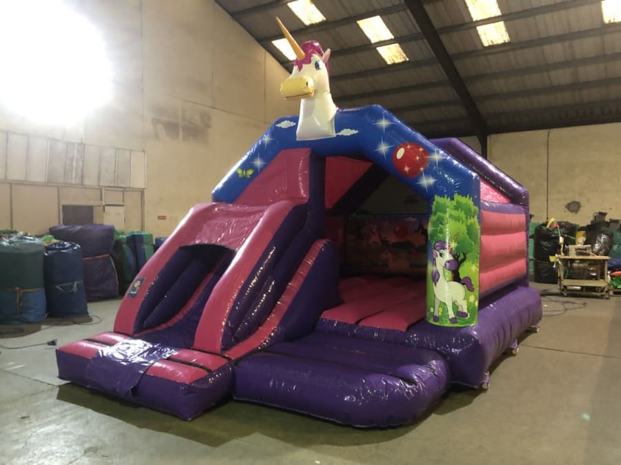Unicorn themed bouncy castles have become extremely popular on the dublin market, we are so proud of our Girls Bouncy Castles and we have a vibrant and colourful inventory to chose from, this particular bouncy castle is 13ft wide and 18ft in length, it also has a front slide attached to it making it easier to fit into the longer but narrower gardens in Dublin, with its 3D unicorn and digital artwork, our unicorn themed bouncy castle will without doubt impress your children and maybe even yourself