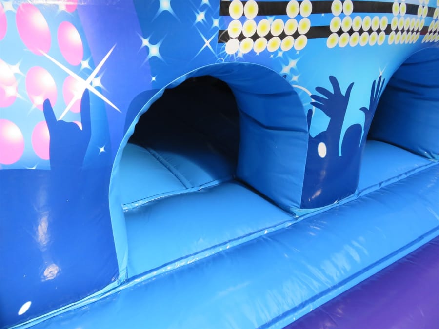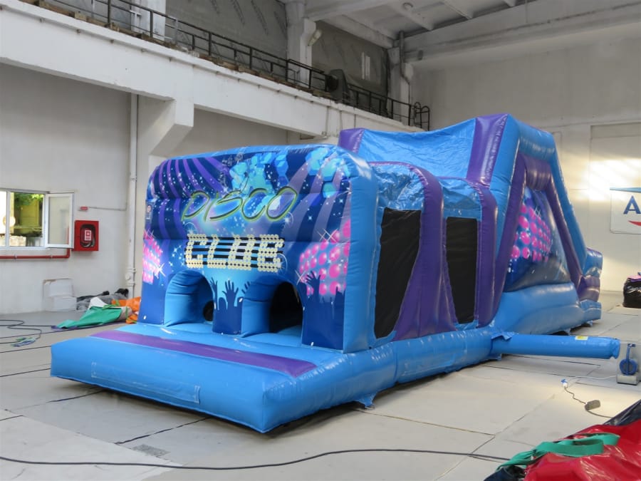 I always like to make a unique addition to larger units we get so i decided on getting our first obstacle course in a disco theme, i got pockets added so i can connect lights and a speaker if you would like to have some music playing at your event/party :)